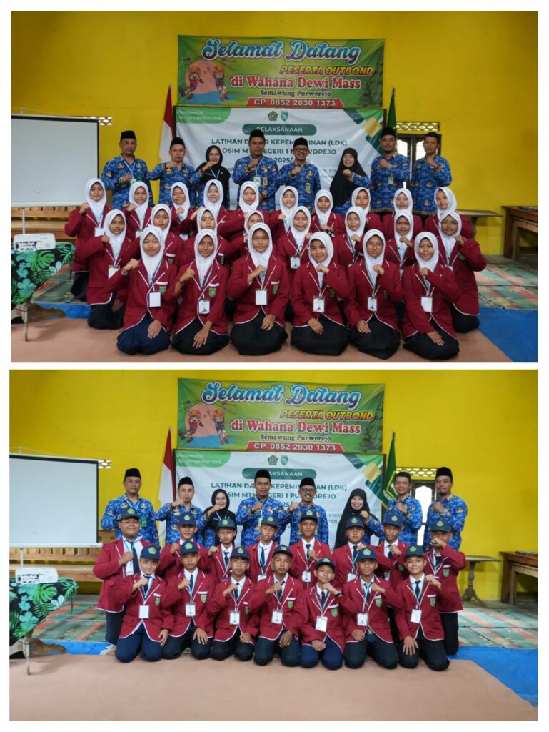PURWOREJO, Sebanyak 40 siswa MTs Negeri 1 Purworejo mengikuti Latihan Dasar Kepemimpinan (LDK) di lokasi Outbond Dewi Mas, Desa Semawung Purworejo. LDK digelar selama dua hari, Selasa dan Rabu (28-29/10/2025). Para peserta LDK merupakan calon pengurus Organisasi Siswa Intra Madrasah (OSIM) di MtsN 1.
