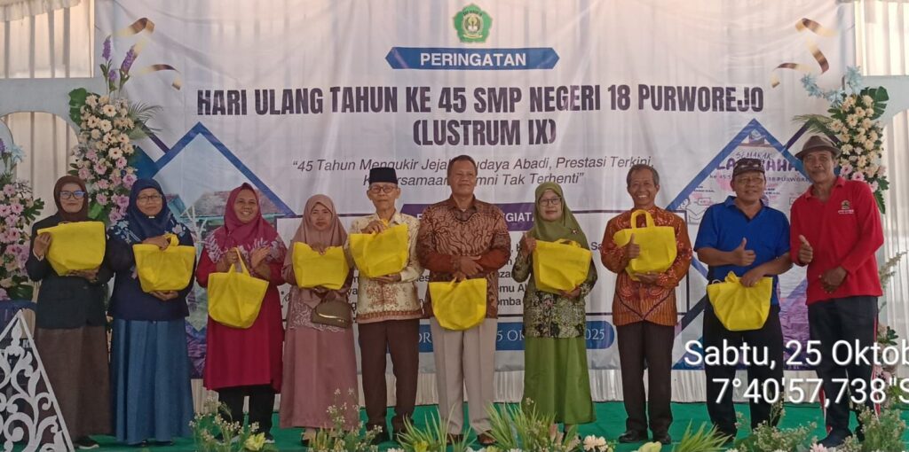 KEMIRI, Di usianya yang ke-45 tahun, SMPN 18 Purworejo merilis paguyuban alumni yang diberi nama Pelita Spendelas. Acara dimulai dengan kegiatan jalan santai bersama ribuan peserta termasuk alumni pada Sabtu (25/10/2025) pagi.