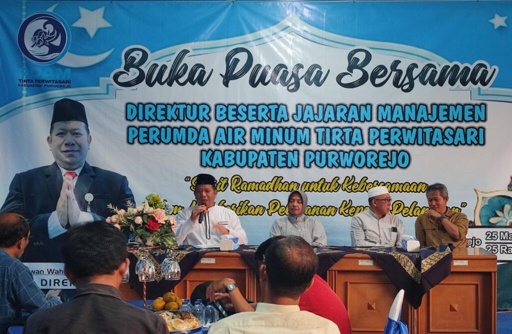 PURWOREJO, Perusahaan Umum Daerah (Perumda) Air Minum Tirta Perwitasari mengundang puluhan awak media dalam acara buka puasa bersama yang digelar di kantor PDAM Purworejo pada Selasa (25/3/2025). Acara ini turut dihadiri oleh Bupati Purworejo Yuli Hastuti, Sekretaris Daerah Achmad Kurniawan, Asisten I Bambang Susilo, serta Kepala Bagian Perekonomian Anggit Wahyu.