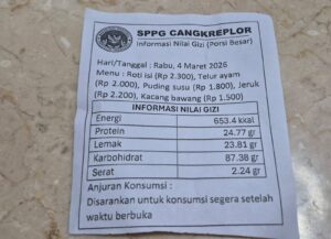 PURWOREJO, Satuan Pelayanan Pemenuhan Gizi (SPPG) Cangkreplor Purworejo mengikuti anjuran dari Badan Gizi Nasional (BGN). Yakni mencantumkan informasi nilai gizi …