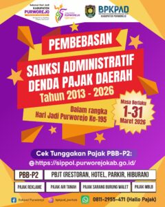 PURWOREJO, Pemkab Purworejo menghapus sanksi Denda Pajak Daerah Selama Maret 2026. Program Pembebasan Sanksi Administratif Pajak Daerah ini berlaku mulai …