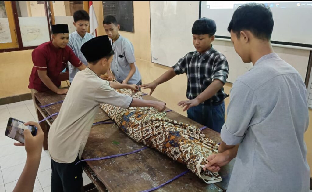 “Tiap kelas dibagi menjadi empat kelompok. Kelompok 1 mempraktikkan tata cara memandikan jenazah, kelompok 2 mengkafani, kelompok 3 mensholatkan, dan kelompok 4 pemakaman,” imbuh Pawitno.