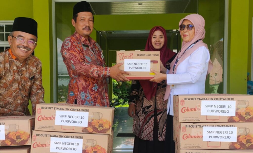 GRABAG, Mengakhiri rangkaian kegiatan Ramadan 1445 Hijriah tahun ini, SMPN 10 Purworejo membagikan 738 paket zakat beras dan pakaian pantas pakai pada Rabu (3/4). Sebelumnya yakni pada Senin dan Selasa (1-2/4) mereka mengikuti pesantren kilat di sekolah.