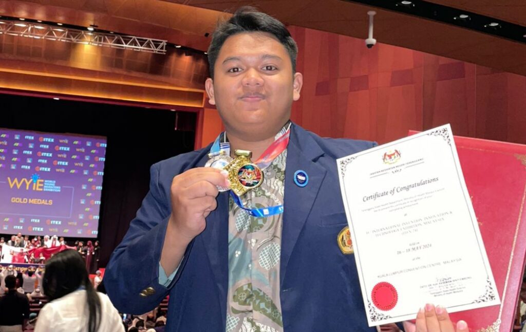 PURWOREJO, Frizal Harna Faturachman, alumni SMAN 1 Purworejo (Muda Ganesha/MG) Tahun 2022 berhasil menorehkan prestasi gemilang dalam kompetisi inovasi internasional ITEX 2024 di Kuala Lumpur, Malaysia pada tanggal 26-17 Mei lalu. Frizal yang kini tercatat sebagai mahasiswa Fakultas Kedokteran Universitas Padjajaran (Unpad) Bandung berhasil meraih dua penghargaan bergengsi dalam kejuaraan tersebut.