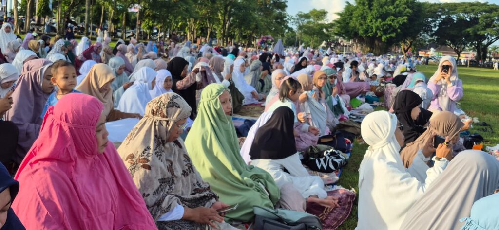 Dalam kotbahnya, ia mengajak jemaah salat untuk menginfakkan harta di jalan Allah dengan ikhlas. “Meski sudah menjalankan satu bulan penuh puasa Ramadan tapi tidak menjamin iman kita sudah baik,” katanya.