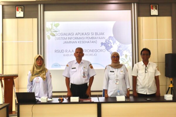 PURWOREJO, Pihak manajemen RSUD R.A.A. Tjokronegoro Purworejo menerima sosialisasi Aplikasi Sistem Informasi Manajemen Pembiayaan Kesehatan (Si Bijak) dari Dinas Kesehatan Kabupaten Purworejo. Sosialisasi dihadiri oleh Plh. Direktur, Heru Agung Prastowo, Kabid Pelayanan Anny Retno Priastuti, serta perwakilan unit-unit layanan di rumah sakit. Perwakilan BPJS Kesehatan dan PICklaim juga turut hadir dalam sosialisasi yang diadakan di…