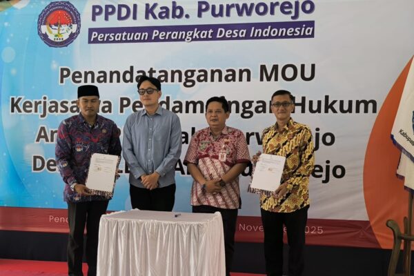 KUTOARJO, Upaya meningkatkan perlindungan hukum bagi 4.544 perangkat desa di Kabupaten Purworejo kembali diperkuat melalui penandatanganan Memorandum of Understanding (MoU) antara Lembaga Bantuan Hukum (LBH) Sakti dan Persatuan Perangkat Desa Indonesia (PPDI) Kabupaten Purworejo. Penandatanganan MoU berlangsung di Pendopo Wakil Bupati, Kutoarjo, Kamis (27/11/2025). Dokumen kerja sama tersebut ditandatangani oleh Direktur LBH Sakti K.A. Dewa…