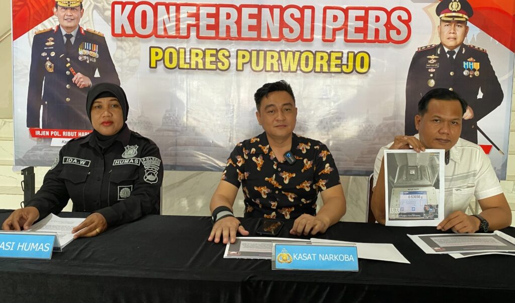 Kapolres Purworejo, AKBP Windy Syafutra melalui Kasatres Narkoba AKP Amirudin Zulkarnain, didampingi KBO Narkoba Ipda Bambang Rachmanto dan Kasi Humas AKP Ida Widaastuti, membeberkan kronologi penangkapan tersebut dalam konferensi pers yang digelar di Lobby Mapolres Purworejo, Rabu (22/4/2026) pagi.