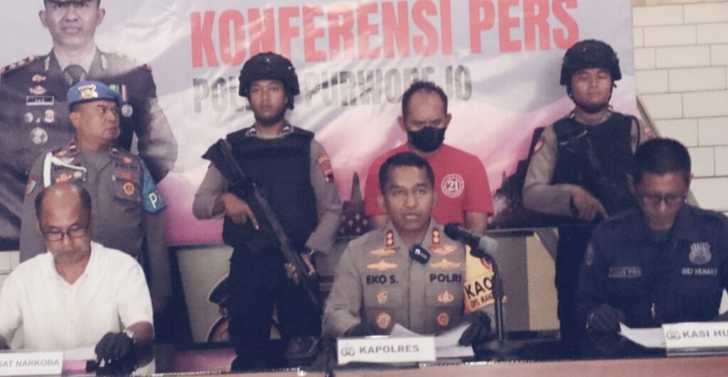 Peristiwa penangkapan yang terjadi pada Selasa (2/1) sore tersebut diungkap oleh Kapolres Purworejo AKBP Eko Sunaryo dalam konferensi pers yang digelar pada Senin (15/1) di Mapolres. Saat menyampaikan keterangannya, Kapolres didampingi Kasat Narkoba AKP Damuri dan Kasi Humas AKP Tulus Priyanto.