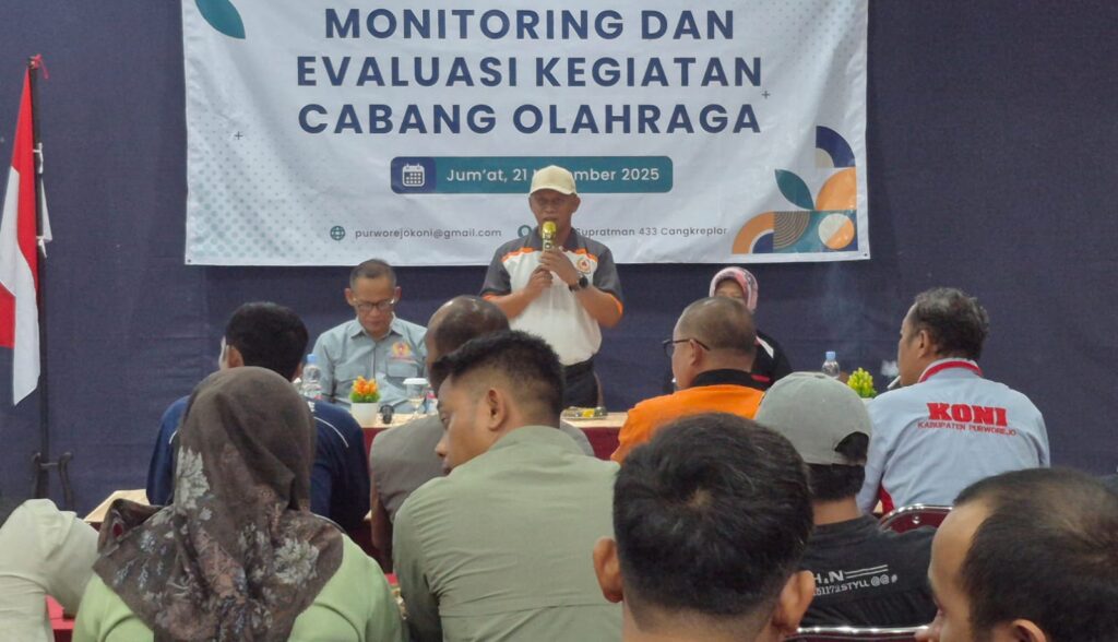 PURWOREJO, Untuk memberikan pemahaman bersama terkait capaian yang diperoleh, Komite Olahraga Nasional Indonesia (KONI) Kabupaten Purworejo melakukan monitoring dan evaluasi kegiatan cabang olahraga (cabor). Kegiatan semacam ini perlu dilakukan, apalagi di penghujung tahun 2025 ini sudah banyak cabor yang melakukan kegiatan sesuai dengan program kerja mereka masing-masing.