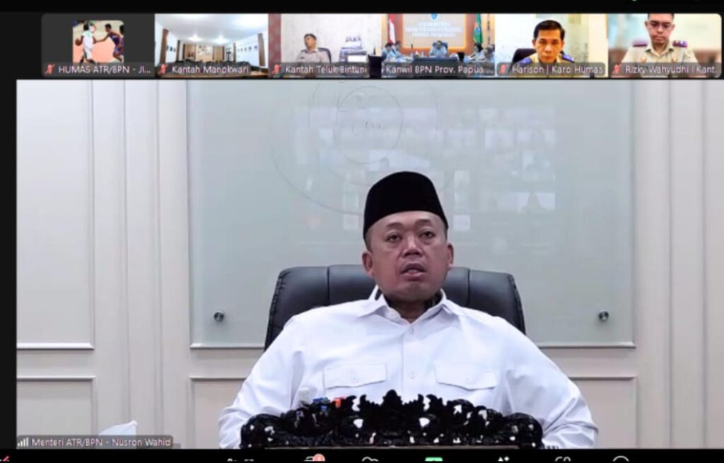 JAKARTA, Menteri Agraria dan Tata Ruang/Kepala Badan Pertanahan Nasional (ATR/BPN), Nusron Wahid memberikan pengarahan untuk pertama kali ke jajaran Kantor Wilayah (Kanwil) BPN Provinsi Papua Barat, Senin (2/12) via daring. Ia berkenalan sekaligus menekankan agar jajaran memberikan pelayanan terbaik bagi masyarakat.
