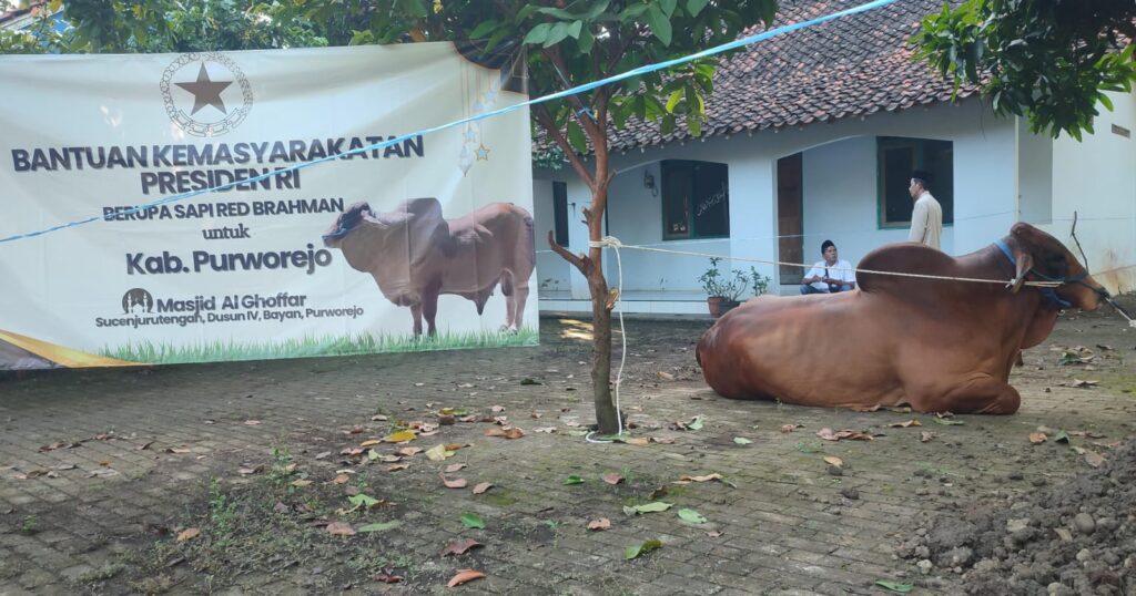 PURWOREJO, Suasana Hari Raya Idul Adha 1446 Hijriah di Masjid Al Ghoffar, Kelurahan Sucenjurutengah, Kecamatan Bayan, terasa istimewa. Masjid tersebut menjadi salah satu dari dua titik di Kabupaten Purworejo yang menerima bantuan hewan kurban dari Presiden Republik Indonesia berupa satu ekor sapi pada Jumat (6/6/2025).