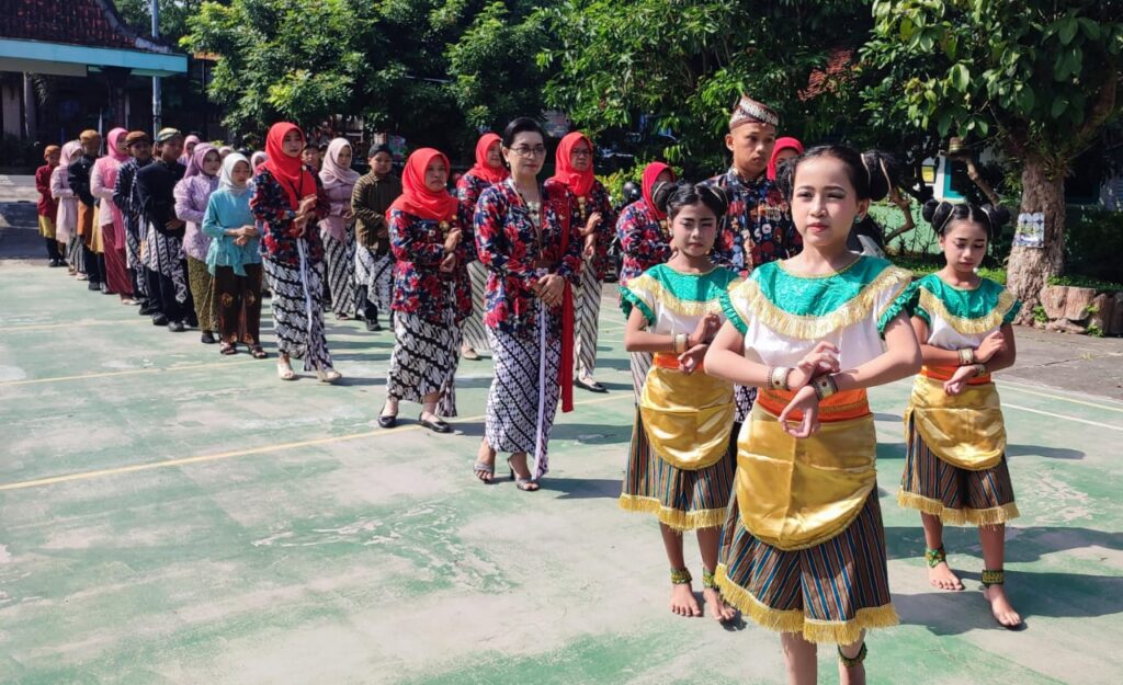 Acara diawali kirab murid dan guru dari halaman sekolah menuju ruang kelas, diiringi gending “Kebo Giro” bernuansa Jawa. Para murid tampil anggun dalam balutan busana adat Jawa, begitu pula guru-guru yang mengenakan beskap dan kebaya bunga mawar.