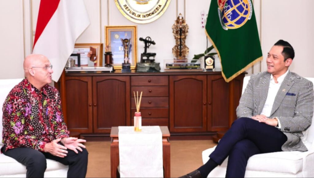 JAKARTA, Menteri Agraria dan Tata Ruang/Kepala Badan Pertanahan Nasional (ATR/BPN), Agus Harimurti Yudhoyono (AHY) melakukan pertemuan dengan Mission Director of United States Agency for International Development (USAID) Indonesia, Jeffery P. Cohen. Pembahasan pertemuan ini berkisar seputar peluang kerja sama antara kedua negara, utamanya di bidang pertanahan dan tata ruang.