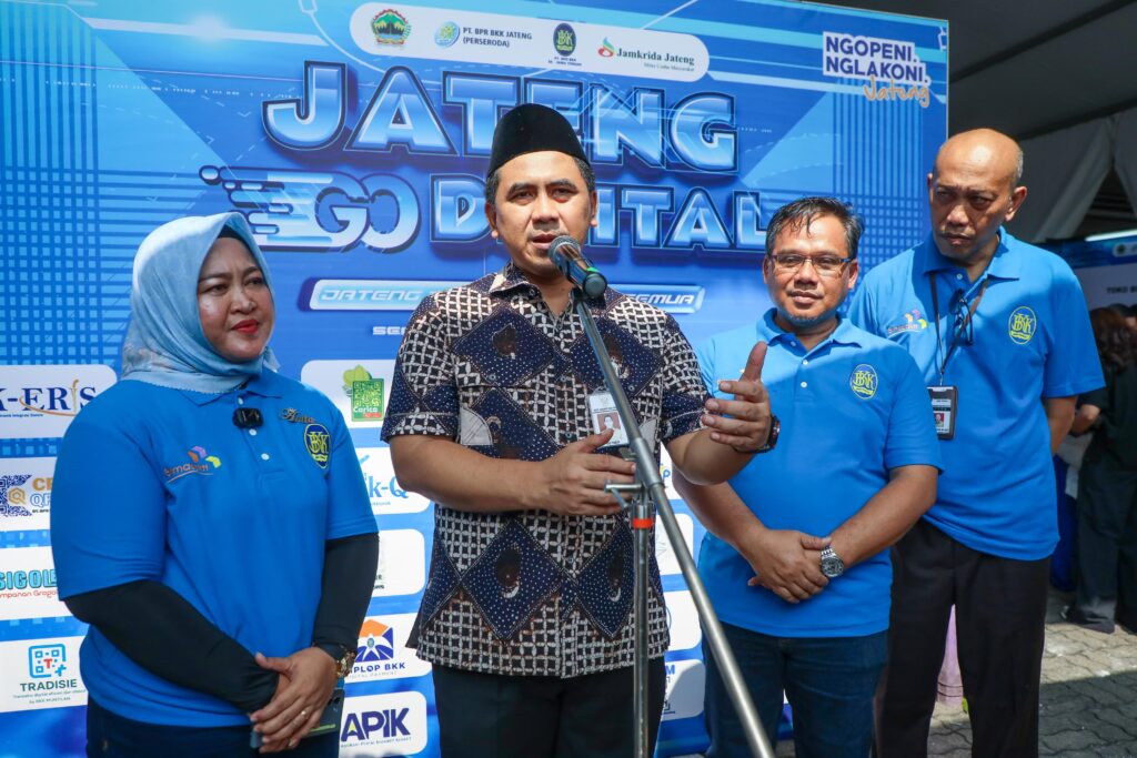 “Pada saat diterpa pandemi Covid-19, ekonomi nyaris lumpuh, tetapi masyarakat kembali bangkit. Saat ini BPR BKK siap dan menjadi garda terdepanbagi UMKM, petani, dan nelayan sehingga bisa bangkit kembali,” ujar Gus Yasin dalam Launching Digitalisasi Ekonomi PT BPR BKK, penandatanganan MoU dengan Bank Mandiri, BSI, serta Host to Host dengan PT Jamkrida di Halaman Kantor Gubernur Jawa Tengah, Jumat (8/8/2025).