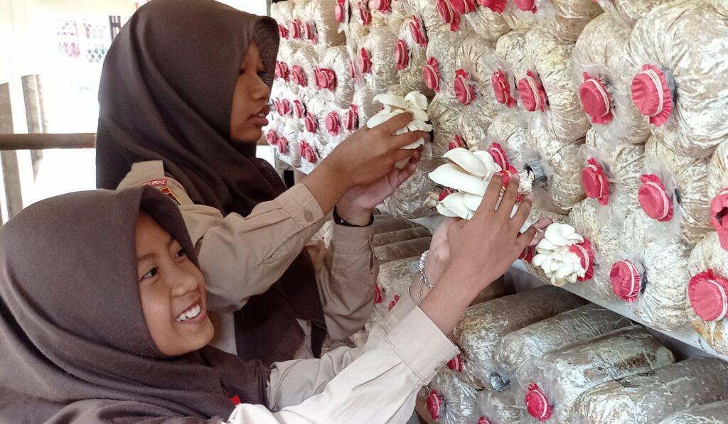 “Masing-masing siswa membuat satu media atau baglog, sehingga total ada 192 yang ditempatkan di samping kamar mandi sekolah,” jelasnya. Sedangkan pemeliharaan jamur dilakukan dengan penjadwalan piket untuk masing-masing kelas.