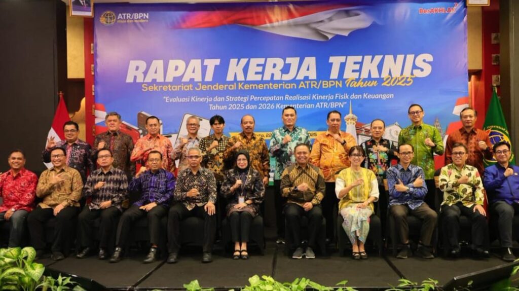 Rakernis Sekretariat Jenderal Kementerian ATR/BPN mengusung tema “Evaluasi Kinerja dan Strategi Percepatan Realisasi Kinerja Fisik dan Keuangan Tahun 2025 dan 2026 Kementerian ATR/BPN”. Kegiatan ini menjadi forum penguatan peran Tata Usaha dalam menjaga keterpaduan antara perencanaan, pelaksanaan, dan pengendalian program.