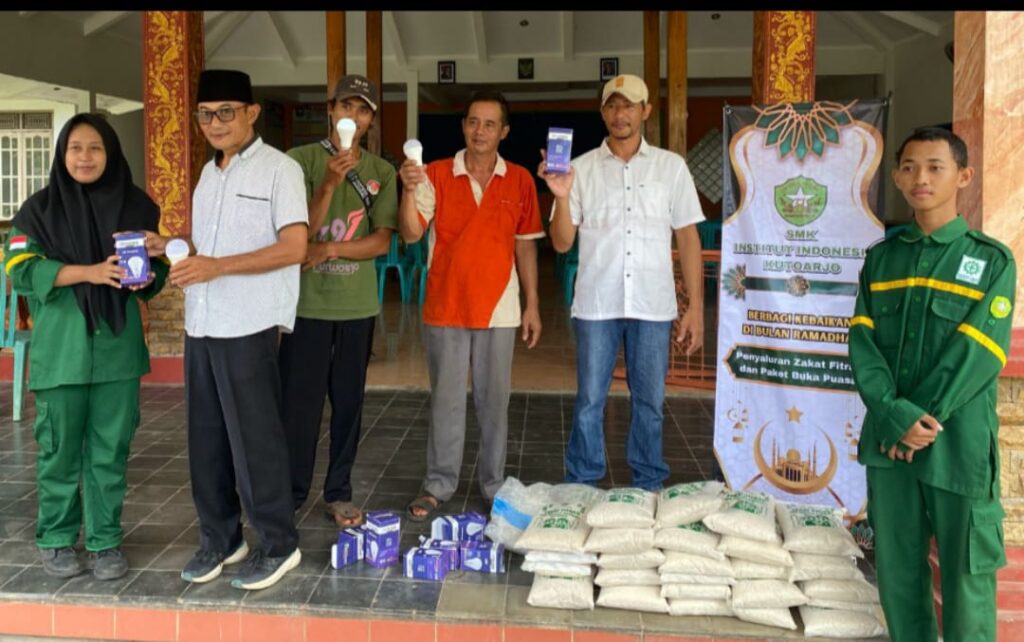 KUTOARJO, SMK Institut Indonesia (ii) Purworejo membagikan paket zakat ke-9 desa yang tersebar di lima kecamatan. Tak hanya beras, SMK ini juga membagikan lampu emergency dan LED. Masing masing desa mendapatkan 35 paket zakat, lima lampu emergency dan tiga lampu LED merk Instindo yang diproduksi sendiri oleh siswa SMK ii.