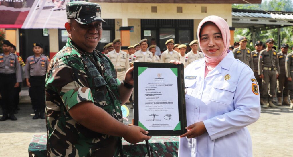 PURWOREJO, Bupati Purworejo Yuli Hastuti memimpin upacara pembukaan TNI Manunggal Membangun Desa (TMMD) Sengkuyung Tahap II Tahun Anggaran 2024 yang dipusatkan di halaman SD Negeri Pamriyan, Kecamatan Pituruh, Rabu (8/5).