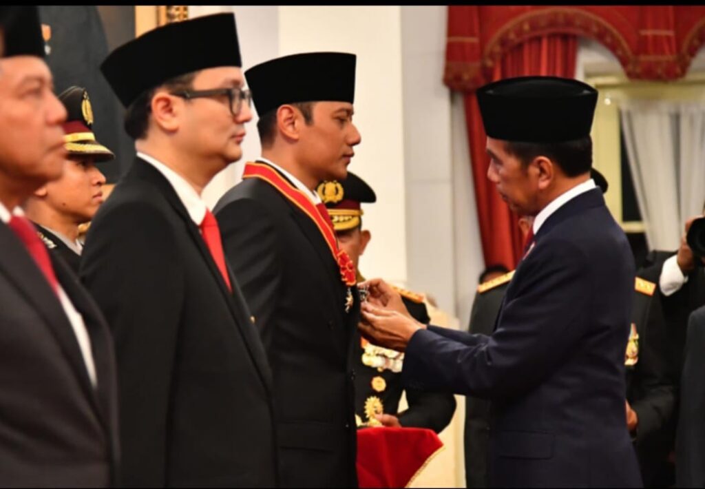JAKARTA, Menteri Agraria dan Tata Ruang/Kepala Badan Pertanahan Nasional (ATR/BPN), Agus Harimurti Yudhoyono (AHY) dianugerahi Bintang Mahaputera Nararya oleh Presiden Joko Widodo di Istana Merdeka, Rabu (14/8). Menteri AHY mengatakan bahwa bintang ini adalah bentuk penghargaan dan tanggung jawab yang diberikan presiden.