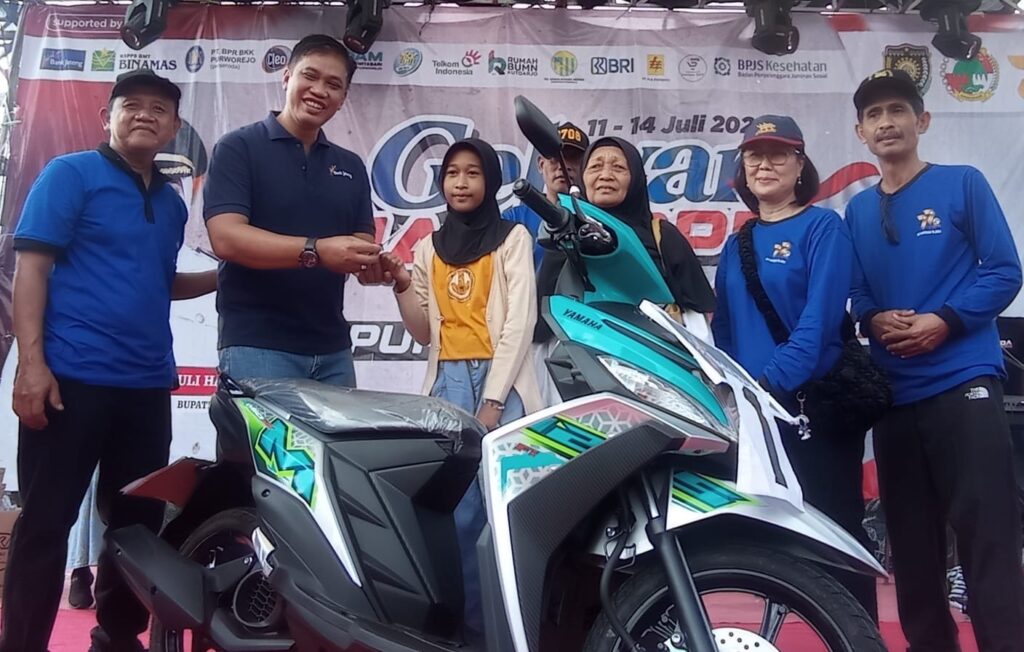 Salah satu siswi SDN Sindurjan Purworejo, Nayla (11) beruntung mendapatkan hadiah utama sepeda motor. Saat penyerahan hadiah Nayla didampingi neneknya yang menunjukkan KTP-nya dengan alamat RT 3 RW 1 Desa Lugosobo Kecamatan Gebang.