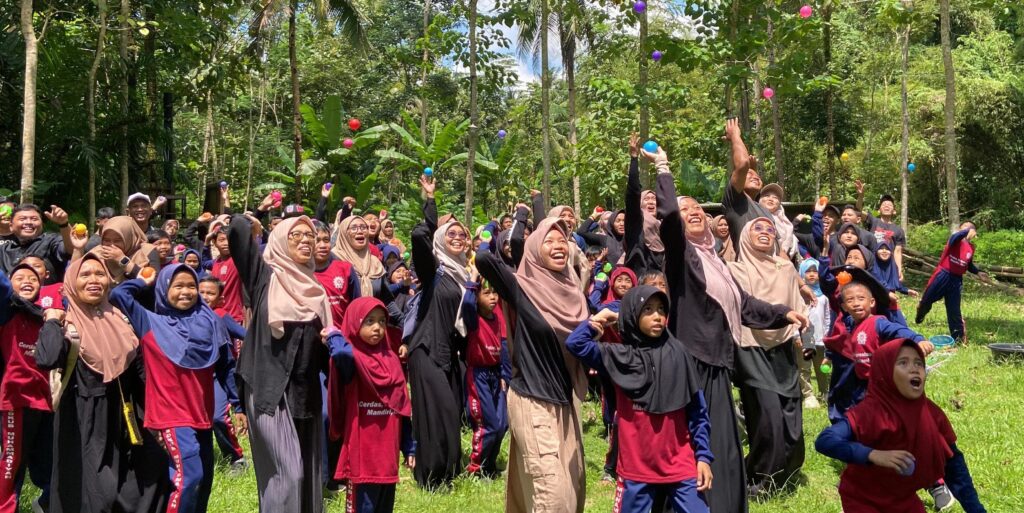 Usai sesi parenting, para orang tua bergabung dengan anak-anak untuk mengikuti berbagai permainan outbond. Kegiatan berlangsung meriah di tengah cuaca terik. Para peserta antusias mengikuti setiap rangkaian acara. (Ita)