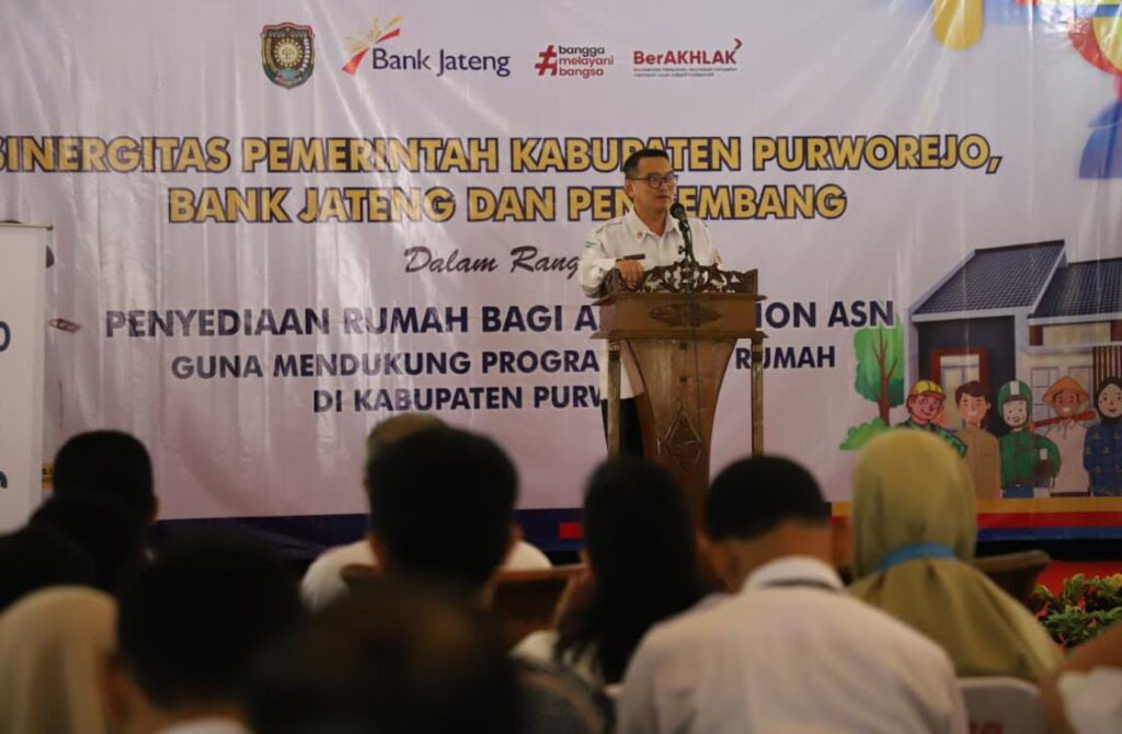 PURWOREJO, Pemerintah Kabupaten Purworejo bersama Bank Jateng dan sejumlah pengembang perumahan menjalin sinergi untuk menyediakan rumah layak huni dengan skema kredit ringan bagi Aparatur Sipil Negara (ASN) maupun non ASN. Program ini sekaligus menjadi bagian dari dukungan terhadap program nasional penyediaan tiga juta rumah yang digagas Presiden Prabowo Subianto.