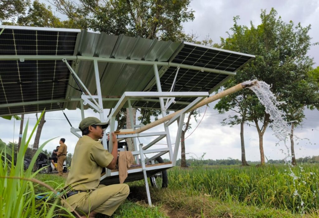 “Energi tersebut digunakan untuk menghidupkan pompa air tenaga surya, membantu pengairan lahan pertanian secara efisien,” kata Dwinanto, Jumat (24/10/2025). Menurut Dwinanto, disebut “Smart” karena alat ini dilengkapi dengan teknologi Internet of Things (IoT), sehingga pengguna dapat menghidupkan, mematikan, dan memantau pompa dari jarak jauh melalui ponsel.