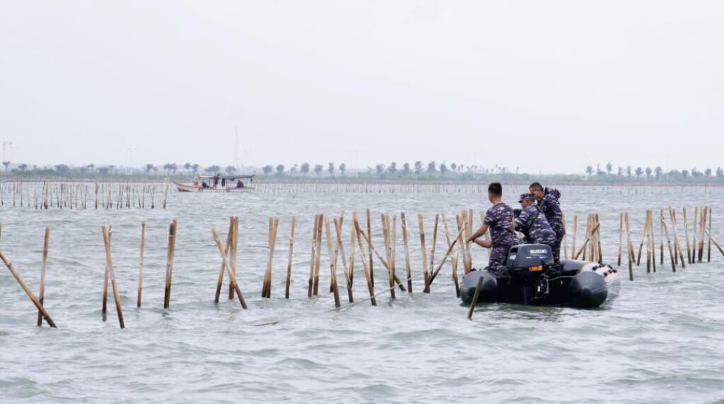 Pada kegiatan ini, seluruh pimpinan yang hadir menggunakan kendaraan LVT untuk meninjau secara langsung proses pencabutan pagar bambu yang tertancap di perairan Tanjung Pasir. Proses ini dilakukan oleh pasukan gabungan yang terdiri dari TNI, Polri, Bakamla, dan nelayan setempat.