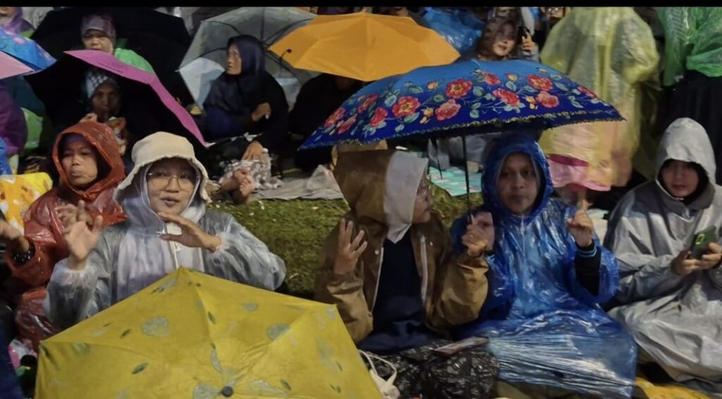 Selanjutnya sholawatan bersama Santri Kendil pun dimulai di bawah guyuran hujan.