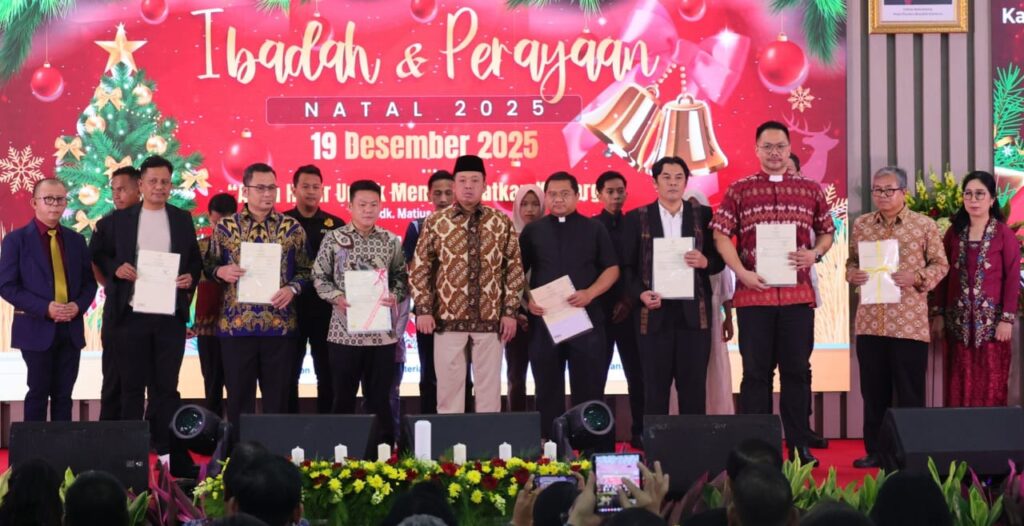 Penyerahan dilakukan oleh Menteri ATR/Kepala BPN didampingi Ketua Panitia Ibadah dan Perayaan Natal 2025, Darman, serta Ketua Persekutuan Umat Kristiani Kementerian ATR/BPN, Chriesty Elisabeth Lengkong.