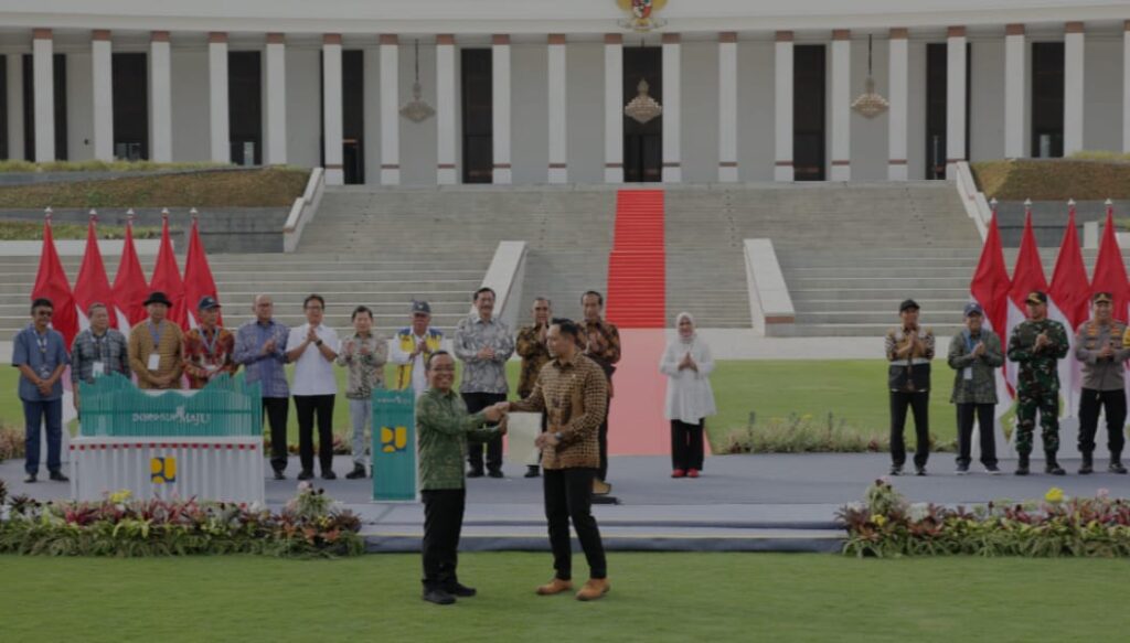 NUSANTARA, Istana Negara dan Istana Garuda yang menjadi kebanggaan bangsa Indonesia kini resmi bersertipikat. Sertipikat Tanah Elektronik berupa Hak Pakai telah diserahkan oleh Menteri Agraria dan Tata Ruang/Kepala Badan Pertanahan Nasional (ATR/BPN), Agus Harimurti Yudhoyono (AHY) kepada Menteri Sekretaris Negara, Pratikno dan disaksikan oleh Presiden Joko Widodo (Jokowi), Jumat (11/10).