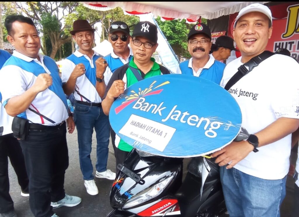 PURWOREJO, Guru SDN Kaligesing, Supriyono beruntung membawa pulang satu unit sepeda motor pada acara Jalan Sehat yang diadakan oleh Pengurus PGRI Kabupaten Purworejo pada Minggu (3/11) di sisi utara Alun-Alun Purworejo. Hadiah utama dari Bank Jateng itu diberikan pada Jalan Sehat yang merupakan salah satu agenda kegiatan memperingati HUT ke-79 PGRI dan Hari Guru Nasional di Kabupaten Purworejo.