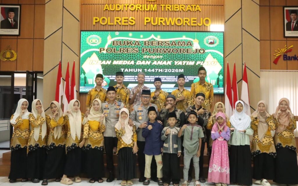 PURWOREJO, Kapolres Purworejo AKBP Windy Syafutra beserta jajarannya menggelar kegiatan berbagi takjil dan buka puasa bersama anak yatim, wartawan, serta pegiat media sosial. Kegiatan digelar di halaman Mapolres Purworejo, Rabu (25/2/2026) sore.
