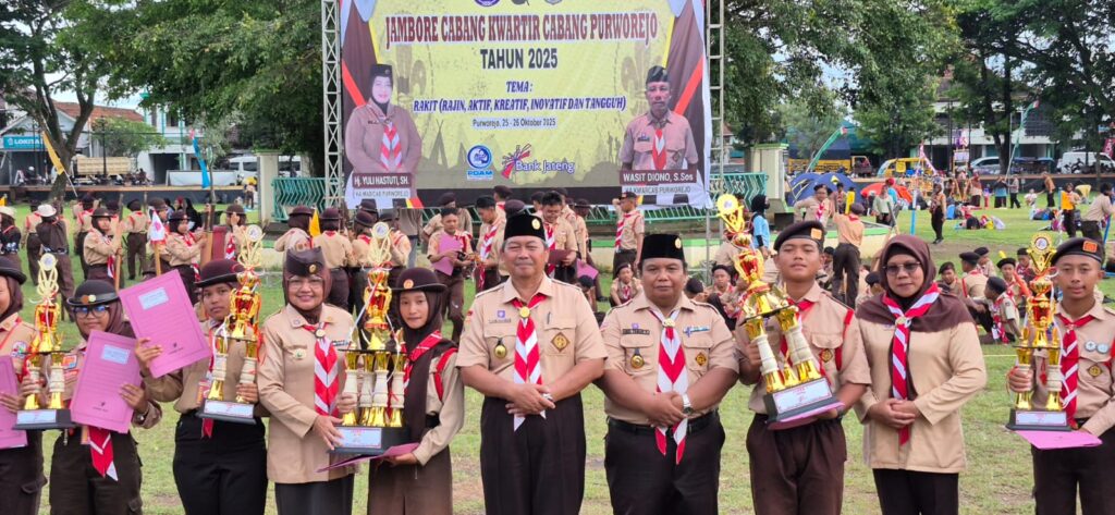 KUTOARJO, Jambore Cabang Kwartir Cabang Purworejo 2025 yang diadakan dua hari, ditutup pada Minggu (26/10/2025) sore di Alun-Alun Kutoarjo. Setelah selama dua hari mengikuti kegiatan hiburan, sosial, maupun prestasi, panitia mengumumkan hasil jambore. Gugus depan (Gudep) Putra Putri M.Ts Al Iman Bulus Gebang dinobatkan menjadi Juara Umum.