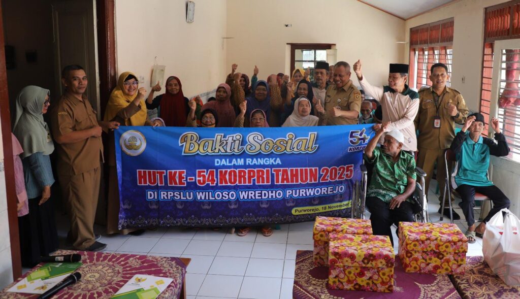 PURWOREJO, Menjelang peringatan Hari Ulang Tahun (HUT) ke-54 Korps Pegawai Republik Indonesia (Korpri), jajaran pengurus di Kabupaten Purworejo melaksanakan kegiatan bakti sosial pada Selasa (18/11/2025). Kegiatan yang menjadi bagian dari rangkaian peringatan HUT Korpri tersebut digelar di dua lokasi, yakni Panti Asuhan Tat Twam Asi dan Panti Wiloso Wredho Purworejo.