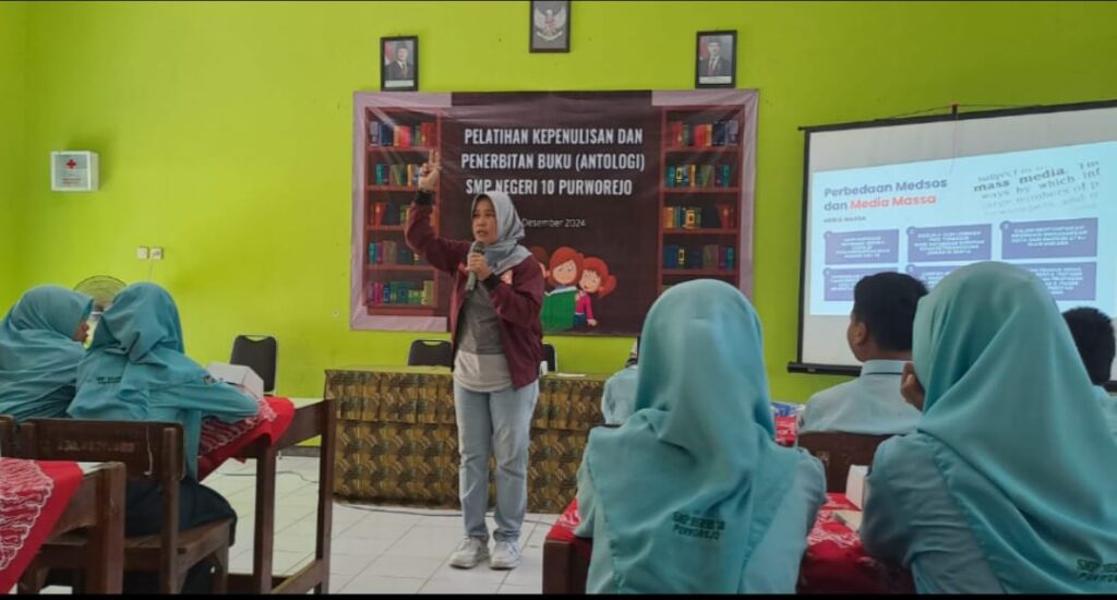GRABAG, Sebagai upaya meningkatkan literasi guru dan siswa, Perpustakaan Cemerlang SMPN 10 Purworejo menyelenggarakan pelatihan kepenulisan. Kegiatan yang bertajuk Pelatihan Kepenulisan dan Penerbitan Buku ini diadakan di ruang sekolah pada Kamis (19/12/2024). Acara menekankan pada penulisan antologi dan puisi dengan menambahkan materi jurnalistik sebagai bahan referensi.