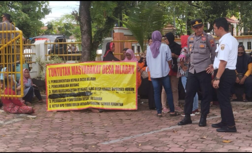 Warga Desa Mlaran menyampaikan tuntutan di Kantor Inspektorat
