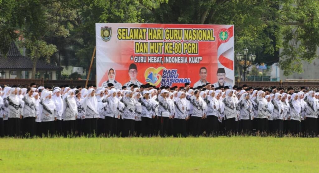 Yudhie pun berpesan agar peringatan Hari Guru dapat dijadikan sebagai momen evaluasi. “Yang sudah baik dipertahanan, yang masih kurang dibenahi dan disesuaikan karena zaman dan regulasi berupa. Kita harus siap dengan perubahan. Kita siapkan kompetensi untuk menyambut Indonesia Emas 2025,” ucapnya.