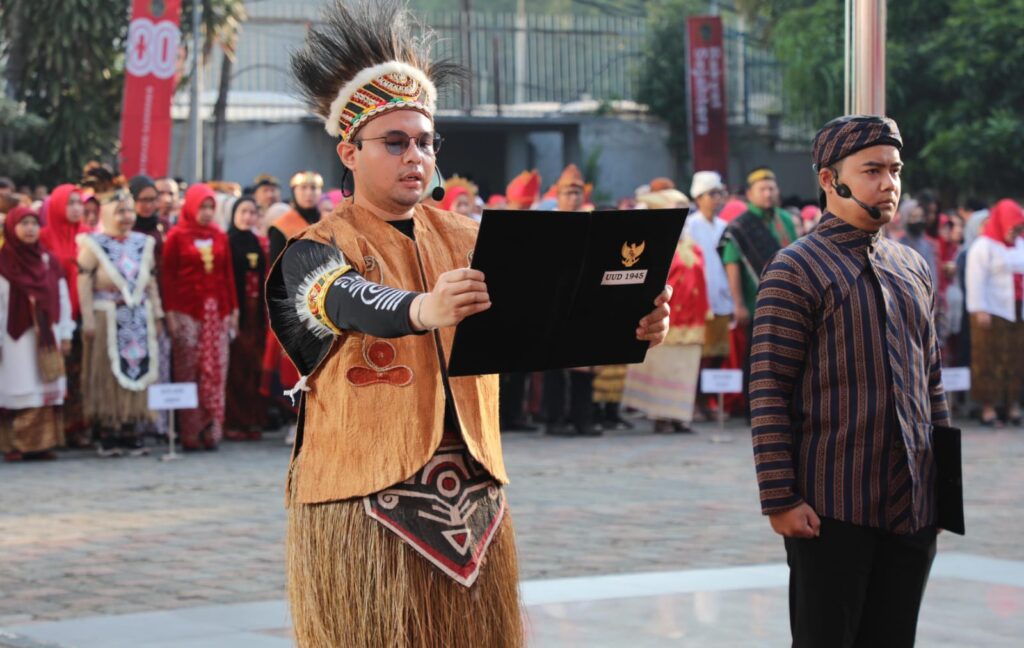 Upacara berlangsung khidmat dengan rangkaian prosesi pengibaran bendera Merah Putih, pembacaan teks Proklamasi, hingga penampilan atraksi seni dan budaya dari berbagai daerah di Indonesia. Dalam kesempatan ini, Menteri Nusron tampil dengan baju adat Melayu dan Wamen Ossy dengan balutan baju adat Betawi.