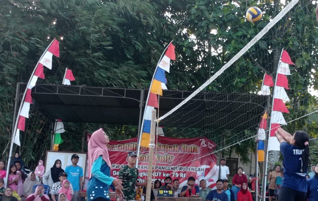 PURWOREJO, Sebanyak 10 RW yang ada di Kelurahan Pangenjurutengah Purworejo memeriahkan HUT ke-79 RI tahun ini melalui pertandingan voli dan sepak bola. Lomba yang diadakan di Lapangan Sitanjung itu dimulai tanggal 14 Juli setiap sore, hingga hari ini, Jumat (19/7) masih berlangsung.