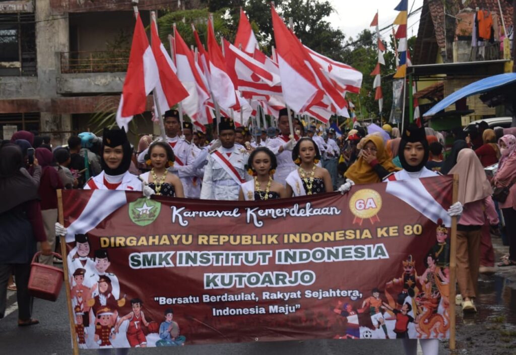 KUTOARJO, Memeriahkan HUT RI tahun ini, partisipasi SMK Institut Indonesia (ii) Kutoarjo tak tanggung-tanggung. Tercatat sebanyak 300 siswa atau lebih dari total jumlah murid ikut memeriahkan Karnaval Kutoarjo, Rabu (27/8/2025) siang. Ke-300 siswa itu berasal dari kelas 10, 11, dan 12 serta guru pendamping.