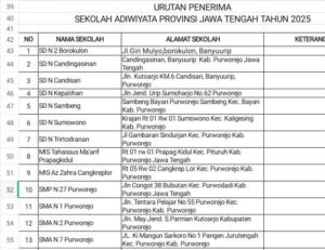Hadir pula perwakilan dari Kemenag, Dinas Pendidikan dan Kebudayaan, Camat Purworejo, Kelurahan Kedungsari. Juga Tim Pembina dan Tim Penilai Sekolah Adiwiyata, Sekolah Adiwiyata Kabupaten dan Provinsi.