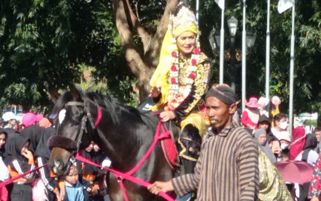 Nikmah yang tampil anggun saat berkuda itupun mendapat aplaus dari jajaran Bupati dan forkopimda saat melintas di depan panggung kehormatan. Bupati dan Ketua DPRD serta jajaran forkopimda menyaksikan jalannya karnaval dari awal hingga akhir. Termasuk Kadin Dikbud Wasit Diono yang menjadi leader sector kegiatan karnaval tersebut.
