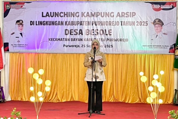 PURWOREJO, Sebagai upaya mendukung Gerakan Nasional Sadar Tertib Arsip Pemerintah Kabupaten Purworejo meluncurkan Kampung Arsip di Desa Besole, Kecamatan Bayan. Acara launching ini dilaksanakan di Gedung Olahraga Sondriyo, Desa Besole, Kecamatan Bayan, Kamis (25/9/2025). Staf Ahli Bupati Bidang Pemerintahan, Hukum, dan Politik, Tri Wahyuni Wulansari mewakili Bupati Purworejo menyampaikan apresiasi setinggi-tingginya kepada Dinas Perpustakaan dan…