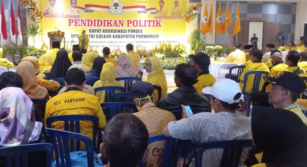 PURWOREJO, DPD Partai Golkar Kabupaten Purworejo menargetkan perolehan 12 kursi anggota DPRD pada Pemilu tahun ini. Atau paling tidak minimal memperoleh sembilan kursi dewan agar dapat mengajukan sendiri bupati periode 2024-2029. “Kita sekarang sudah punya bupati sendiri, maka diharapkan pada masa selanjutnya juga bisa,” kata Ketua Fraksi Partai Golkar Provinsi Jawa Tengah, Imam Teguh Purnomo (Iim) pada acara Pendidikan Politik Rapat Koordinasi Pimdes (rakordes) DPD Golkar Kabupaten Purworejo, Jumat (19/1).