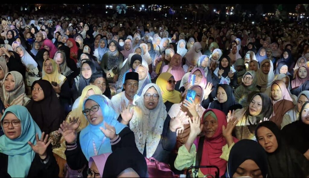 Di hadapan puluhan ribu masyarakat yang hadir, Hermawan menjanjikan akan mengadakan program umrah gratis bagi masyarakat yang mendaftar menjadi pelanggan baru. “Program ini dimulai pada tanggal 1 Januari 2026 dan akan kita undi. Kami belum menentukan berapa orang yang bisa beruntung mendapatkan program ini. Silakan nanti yang belum pasang sambungan segera daftar,” ajak Hermawan yang disambut meriah peserta PDAM Bersholawat.