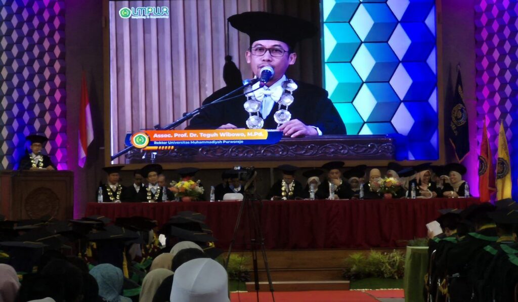 “Ini pecah rekor, dibanding dengan wisuda sebelumnya yang prosentasenya 30%,” kata Rektor UMPwr, Dr. Teguh Wibowo saat menyampaikan sambutan dalam acara wisuda di Auditorium Kasman Singodimedjo, Jumat (24/10/2025).