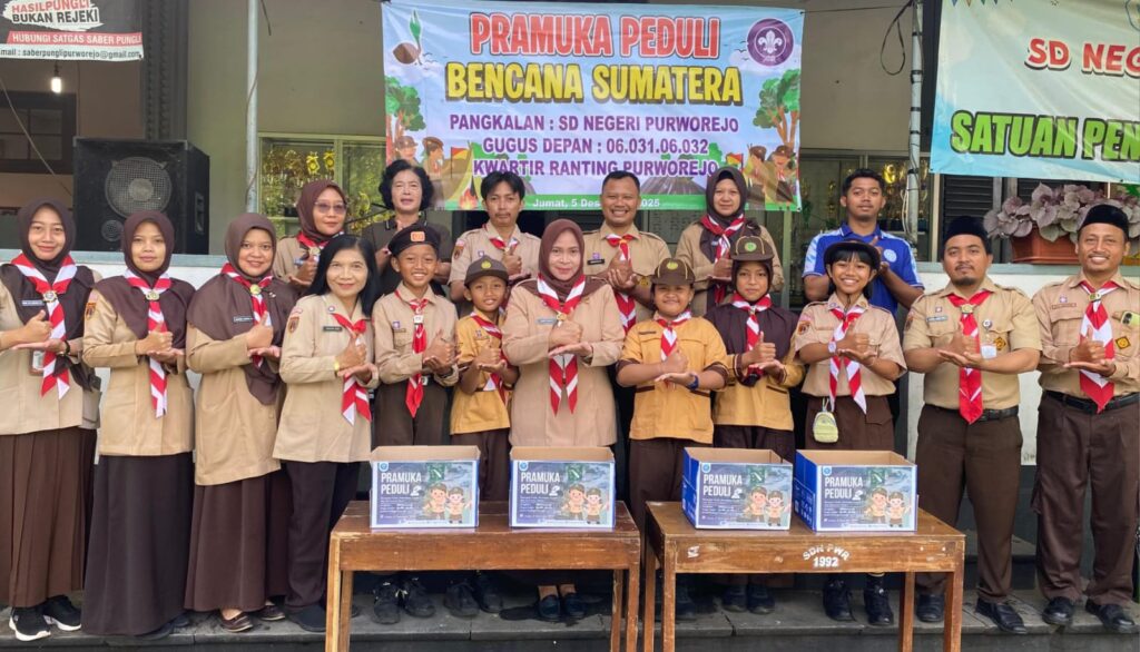 PURWOREJO, Sebagai wujud kepedulian terhadap korban bencana di Sumatera dan Aceh, Anggota Pramuka Pangkalan SD Negeri Purworejo menggalang donasi bersama seikhlasnya untuk setiap anggota. Penggalangan dana yang dilakukan di sekolah pada Sabtu (5/12/2025) adalah dalam agenda Pramuka Peduli (Pramuli) untuk pangkalan SDN Purworejo