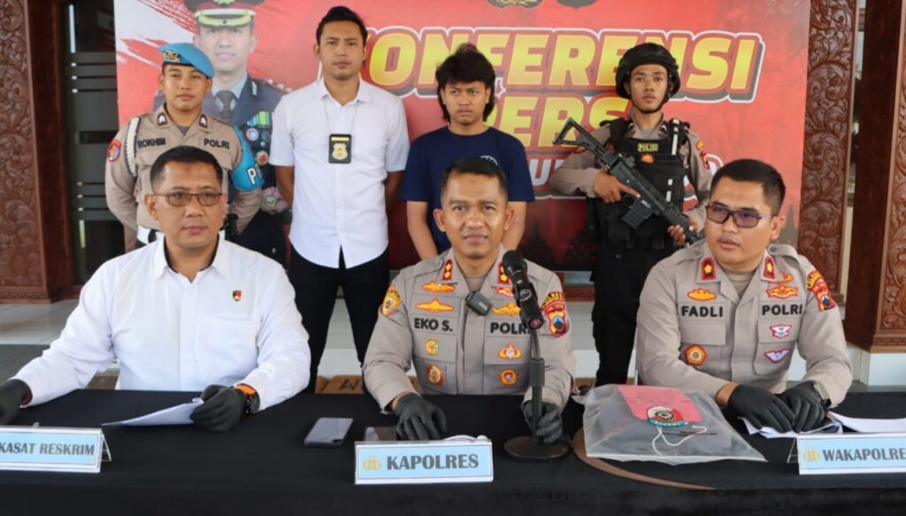 Kapolres menunjukkan barang bukti